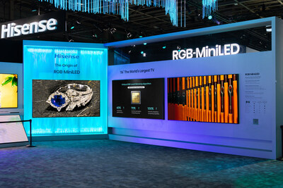В основе выставки — самый большой в мире телевизор RGB-MiniLED 116″ UX, который обеспечивает действительно кинематографическую картину: чистые цвета и ультраплавные градиенты. В качестве источника RGB-MiniLED компания Hisense разработала новый подход к точному управлению светом и цветом. Этот прорыв использует усовершенствованное локальное затемнение, высокую точность и пиковую яркость до 8000 нит, в то же время воспроизводя 100% цветовой гаммы BT.2020 для обеспечения реалистичных переходов, ярких цветов и необычайной четкости.